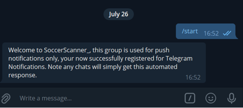 🎉 You’re all set! SoccerScanner will now send alerts directly to your Telegram.